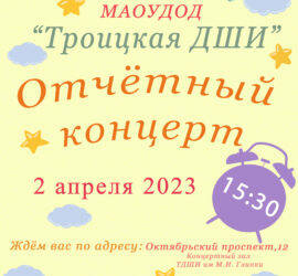 Приглашаем на Отчетный концерт МАОУДОД «Троицкая ДШИ» 02.04.2023 г. в 15.30