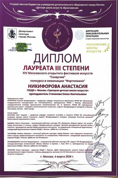 - Открытый окружной конкурс фортепианных ансамблей «Дважды два-четыре», проведенный на базе «Троицкой ДШИ» уже 6 раз, который ежегодно собирает более 100 юных исполнителей Москвы, Московской области и Троицка.