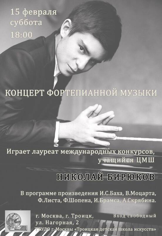 Николай Бирюков учился музыке в Троицкой детской школе искусств в классе Елены Анатольевны Степановой.
