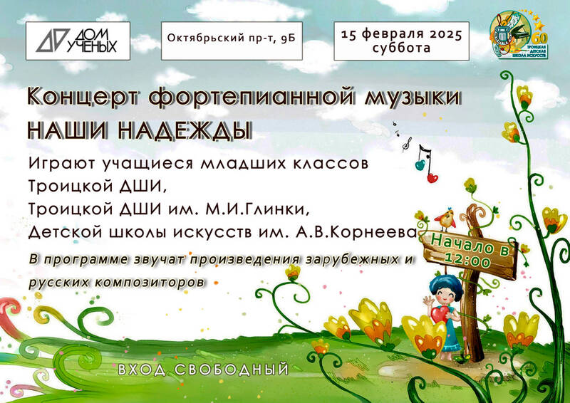 Концерт юных пианистов «НАШИ НАДЕЖДЫ»31 Янв, 2025 в События Концерт юных пианистов «НАШИ НАДЕЖДЫ» Приходите поддержать наших маленьких музыкантов.