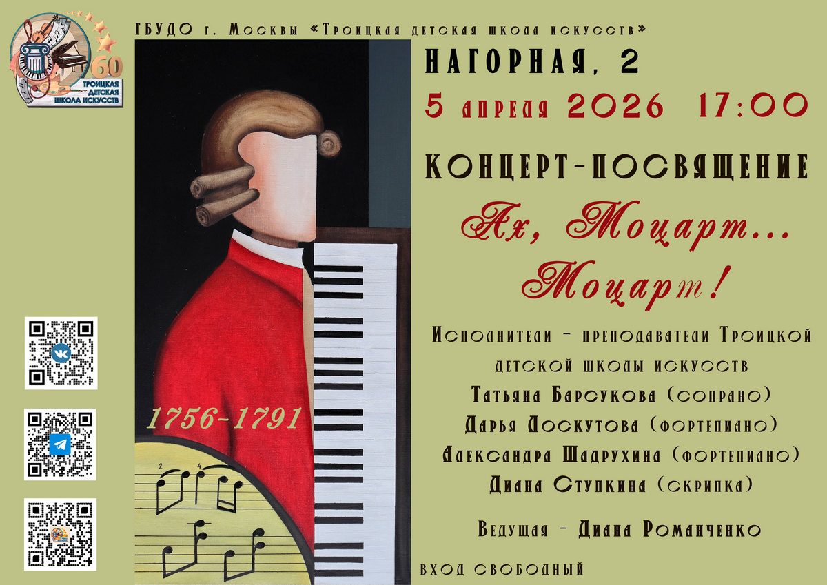 Снова чествуем Моцарта!3 Апр, 2026 в События Приглашаем на концерты, посвященные 270-летие со дня рождения Вольфганга Амадея Моцарта (1756–1791) — великого австрийского гения!